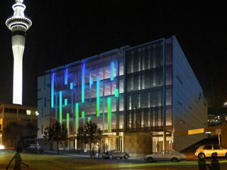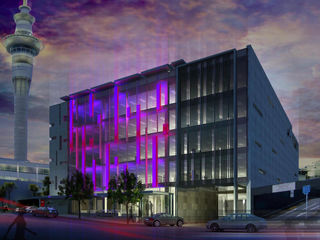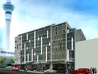 162 Victoria St, oracle houseCity fringe building for Manson’s TCLM Ltd at 162 Victoria St. The frontage of the site is north facing and presents itself to Victoria Street. The site is bounded by existing neighbouring buildings. The building involved construction of a five level office building. The building achieved a 5 Star Greenstar rating. The form of the building consists of concrete tiltpanel walls to the side boundaries. High performance double glazed facades are provided to the North and South edges complemented by a large central atrium which is the buildings key design feature. The atrium allows controlled light to penetrate into the internal office spaces / void containing the central circulation elements. Pedestrian bridges connect the offices spaces horizontally. The front facade is broken down into modulated elements. The left side is the tilt slab panelling punctuated with modulated glazed slots. The central area is floor to ceiling high performance curtainwall overlaid with a weave pattern of frosted glass elements and aluminium louvre blades. The right section of facade is bordered with an alupanel frame element containing vertically patterned aluminium blades. A highly glazed retail space is provided to the right of the entry ramp. The lowest basement contains cycle facilities, staff showering and changing facilities for the building occupants. The 4th floor level space is given over to a large outdoor deck providing a high level of amenity to this floor. The plant room is integrated into the roof level above. NLA = 8,000 Sq.m. Construction completed in 2012. |