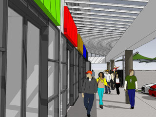 AMP CapitalAMP Capital’s Supa Centa shopping plaza in South Auckland required a renovation of its existing internal foodcourt. The four in-line food tenancies and central seating area have been replaced with five food tenancies facing outwards along the perimeter of the corner sited building. The new tenancies have their own internal seating areas as well as external seating zones along the footpath. The exterior of the building has been treated with contemporary finishes and colours to bring the building up to date. The existing canopy truss has been enclosed to identify the food precinct as well as providing a signage zone for the new retailers. Recessed lighting to the canopy brings the area to life after dark. The colours of the building, the shopfront and canopy, are muted greys to allow the retailers branding to come to the fore. The footpath has been re-laid with three tones of aggregate concrete in a koru style feature pattern to reflect the context of the shopping plaza. The public facilities have also been upgraded and expanded to accommodate the increased patronage of the foodcourt, and additional ancillary areas have been constructed, including a new centre management area. Completion due late 2012. |