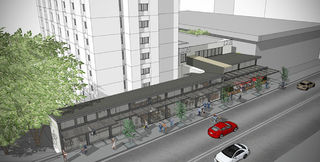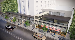 The 5 active edge retail pavilion units front onto Park Rd. The 2 eastern retail units are set back 3m to create a covered outdoor courtyard space flanked each end by landscaping elements. The retail spaces facing Park Rd are steel framed / highly glazed east facing pavilions with a high stud height.