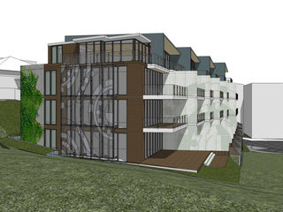 SOL Apartments, 22 Fleet StreetProposed development at 22 Fleet St, Eden Terrace is located on 1421 Sq.m. metres at the end of a cul-de-sac, has a small street frontage about a corner and also occupies two boundary frontages with Basque Park. Proposed are 25 apartments in a configuration of seven per level over three levels, in a stacked/layered set out and then a top pavilion level of 4 apartments. All apartments are at least two-sided and bedrooms all have natural daylight and ventilation achieved through opening windows. The general form of the building is a rectangular but each apartment rhythmically steps back at each junction. All apartments have decks to the North facing the park. End apartments afford wrap around decks to 2 sides. The ground floor apartments at the Eastern end merges with the level of the park and affords direct access to the park. The materiality and colours of the building are essentially a clean sophisticated palette of natural colours and raw honest materials, such as natural concrete, steel feature screens, plywood soffits, stained earthy toned cedar weatherboards, which are all framed in black joinery providing a balance of raw and warm with a range of tactility, sheen, colour and finish. The style of the proposed design is contemporary, with a clear residential vernacular. The project was completed in late 2017. |